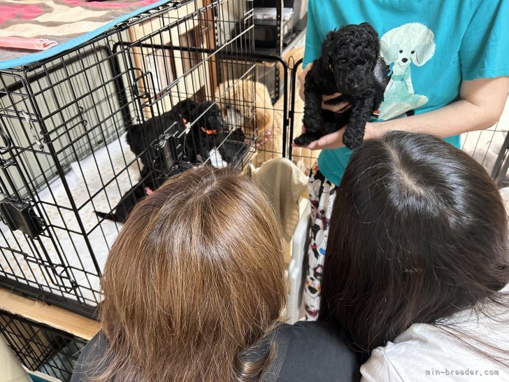 次にリビングのパピースペースでお迎え候補数頭のパピーを移動。そして、お迎えする運命の一頭を選んでもらいます😊