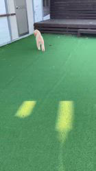 庭に人工芝を敷き運動量も確保するように努めています。