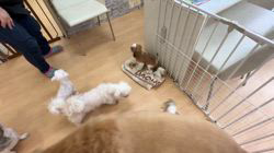 おチビ達は家族様の環境を考え基本的にはサークルが中心の生活で離乳食が始まれば1日に数回出して皆んなと遊ばせます。