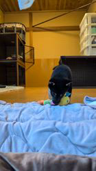 甘えん坊な性格で人のあとをついてまわったり、膝の上におもちゃを持ってきて遊んだりしています😊