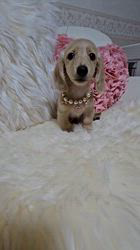 ミニチュアダックスとカニンヘンダックスの間にとっても可愛いベビーちゃんが5匹産まれました(*^^) この子は小振りのイエローの女の子です、仕草がとっても可愛い子で癒されております😊