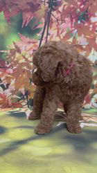トイプードル予想のレッドの女の子ピンクゴムです。