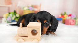 お父さん犬 カニンヘン・ダックスフンドのロカンくん 1歳 毛色はブラック&タン 体重は4.1kg
