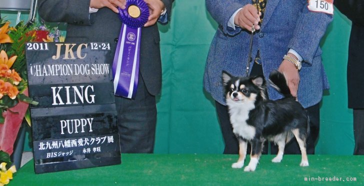 チワワ専門犬舎で25年ほどになります。ドッグショーに出陳しながらショー会場へ足を運び、10数年勉強してまいりました。そしてスタンダードに基づき自分の思うようなチワワの作出に力を入れ、イギリス・アメリカのチャンピオンの子を親犬にもつ自家繁殖チャンピオン犬を基礎に、スタンダードを重視しながら健全で血統・犬質にこだわり、骨格構成の美しい上品で華のある可愛いお顔、フレンドリーなチワワの作出に努めています。チワワのスタンダードを重視しているため、生まれます当犬舎の子の成犬時は3kg以内で2.5kg前後の子がほとんどです。代々の子を家族同様一緒に暮らしてきましたから言えることでもあります。